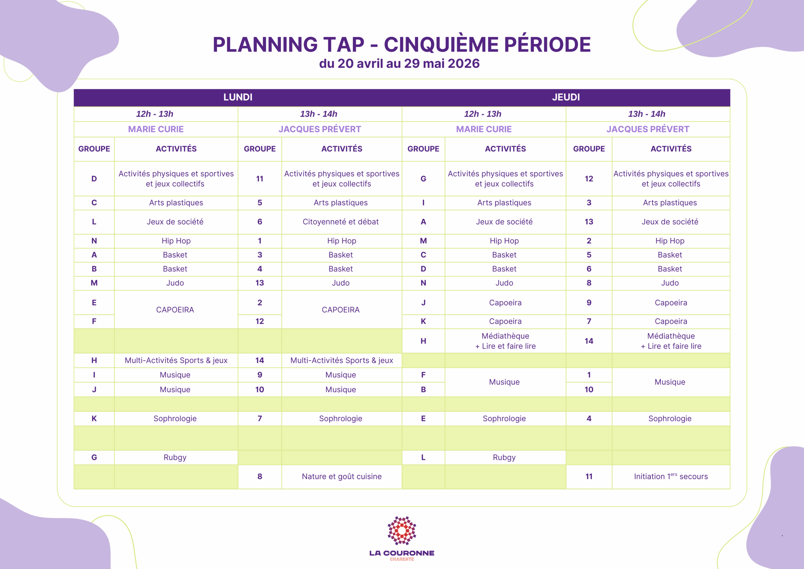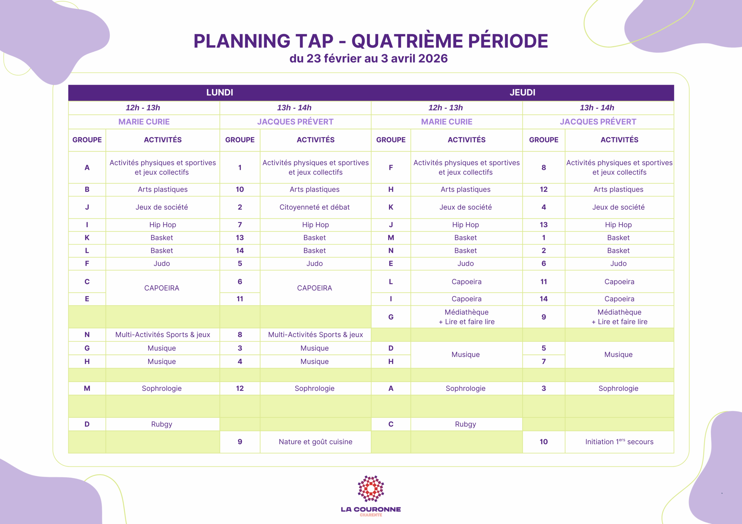 Planning des TAP